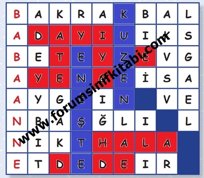 Soru : Bulmaca üzerinde boyanmayan harfleri aşağıdaki kutulara sırayla yazarak şifreyi çözünüz.