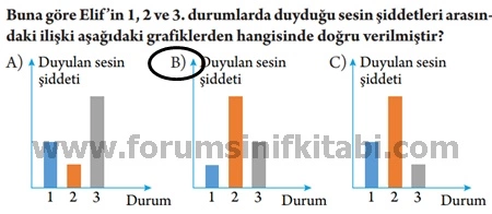 Buna göre Elif ’in 1, 2 ve 3. durumlarda duyduğu sesin şiddetleri arasındaki ilişki aşağıdaki grafiklerden hangisinde doğru verilmiştir?