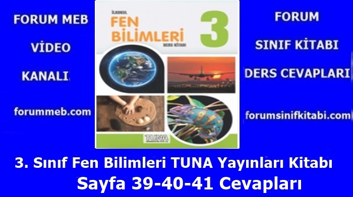“3. Sınıf Fen Bilimleri Kitabı Sayfa 39-40-41 TUNA Yayınları” konusunu videolu bir ÅŸekilde izleyebilir ve dinleyebilirsiniz.