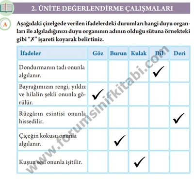 3 sınıf fen bilimleri ders kitabı bize yer alan 2 ünite değerlendirme sorularını yaparken duyu organlarımız hakkında detaylı bilgi ve cevapları bu soruları cevaplayarak tekrar edilmiş olduk ve derslerimizi tekrarlayarak bilgilerimizi tekrar canlandırarak birçok konu hakkında bilgi sahibi olduğumuz duyu organlarımız ve temizliği hakkındaki bilgileri buraya bakarak cevapladım. Ünite değerlendirme sorularını yaparken Forum sınıf kitabı sitesinde cevaplarından faydalanabilir bilgi ve cevapları buraya bakarak yaptığınıza doğru bilgilerden faydalandığınızdan emin olabilirsiniz.