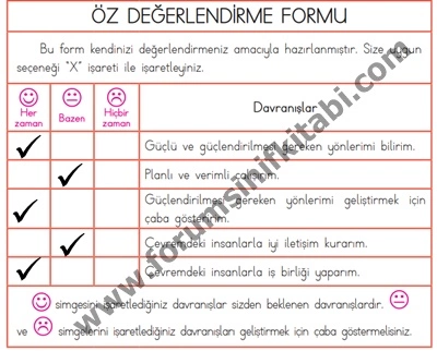 1- AÅŸağıdaki “Öz DeÄŸerlendirme Formu“ nu doldurunuz.Â