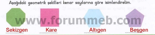 Soru : Aşağıdaki geometrik şekilleri kenar sayılarına göre isimlendirelim.