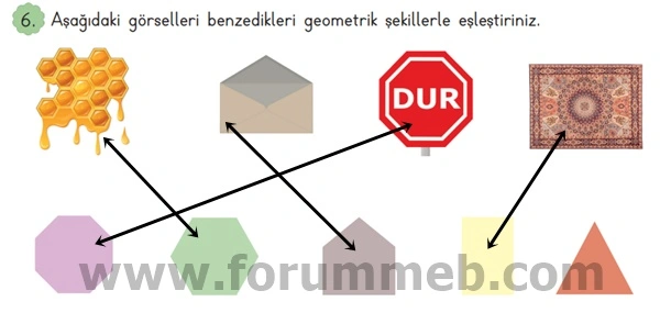 6. Aşağıdaki görselleri benzedikleri geometrik şekillerle eşleştiriniz.