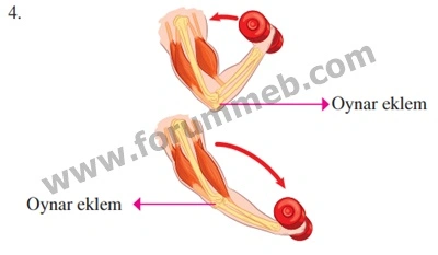 B. Yandaki görsellerde kolun dirsekten bükülmesi ve açılması esnasında kasların görünümü verilmiştir. Buna göre aşağıdaki soruların cevaplarını defterinize yazınız.