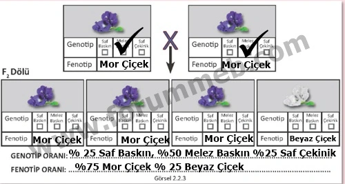 2. Bu çaprazlamada yüzde %25 oranında saf çekinik birey oluşmuştur.