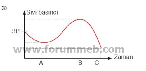 3) Akvaryumun içerisinde ilerleyen bir balığın akvaryum içerisinde izlediği yol kesikli çizgiler ile gösterilmiştir. Başlangıçta balığa etki eden basınç 3P olduğuna göre; A, B ve C noktalarında balığa etki eden su basıncının değişim grafiğini aşağıdaki alana çiziniz.