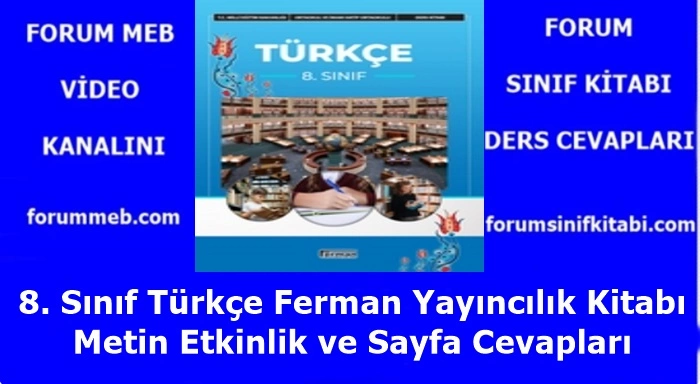 Ortaokul ve İmam Hatip Ortaokulu 8. Sınıf Türkçe Ferman Yayıncılık Ders Kitabı Metin Etkinlik ve Sayfa Cevapları