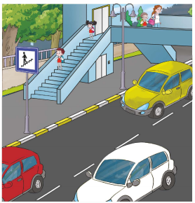 Cevap: Yayalar yolun karşısına üst geçitten geçiyorlar. Aynı zamanda yaya geçitleri ve alt geçitlerden geçebilirler.