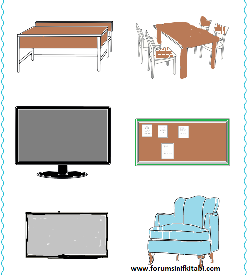 Soru: Aşağıdaki görselleri inceleyiniz. Ders araç ve gereci olan görselleri boyayınız.