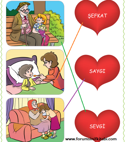 Soru: Görselleri inceleyiniz. Görsellerin bir ailede olması gereken hangi değeri anlattığını ok ile gösteriniz.