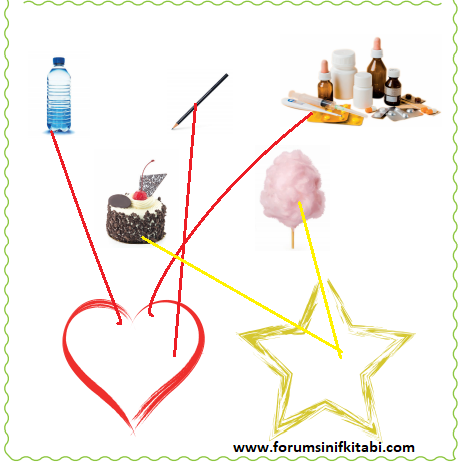 Soru: Görselleri inceleyiniz. İhtiyaçları kalp şeklinin, istekleri ise yıldız şeklinin içine, ok yardımıyla yerleştiriniz.