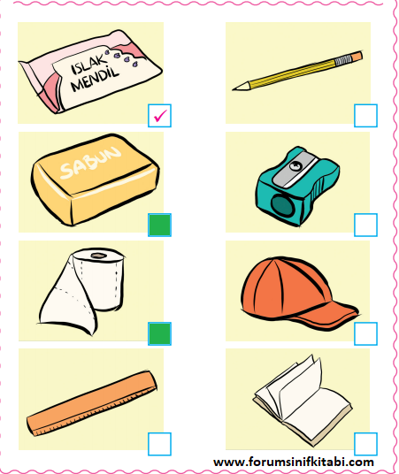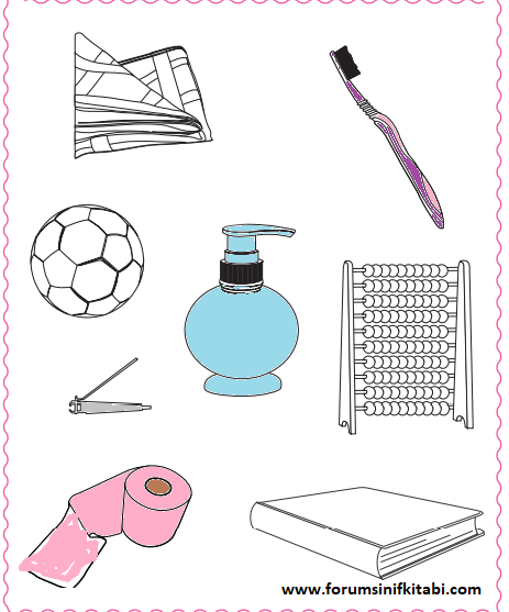 Soru: Görselleri inceleyiniz. Kişisel bakımla ilgili olan nesneleri boyayınız.