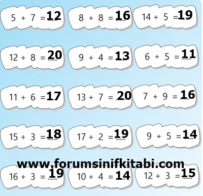 1. Sınıf Matematik Çalışma Kitabı Zihinden Toplama İşlemi Metni Cevapları