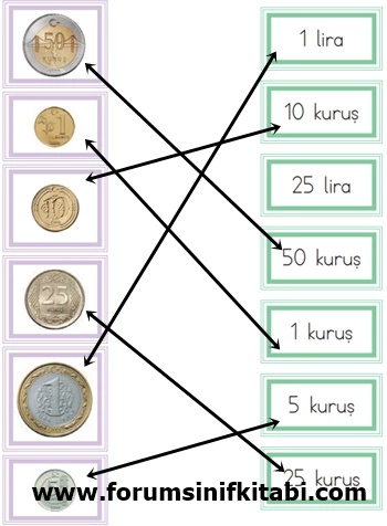 2. AÅŸağıdaki paralarla deÄŸerlerini ok iÅŸaretiyle eÅŸleyiniz.Â