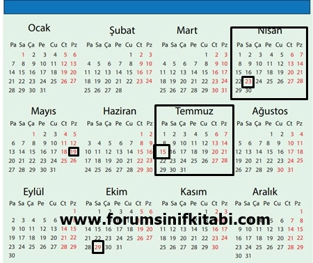 Soru : 23 Nisan ve 15 Temmuz günlerinin bulunduğu haftaları takvim üzerinde gösteriniz.