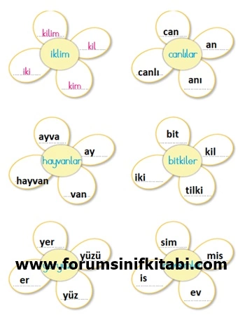 Soru : Kelimelerdeki harfleri kullanarak yeni kelimeler oluşturup yazınız.