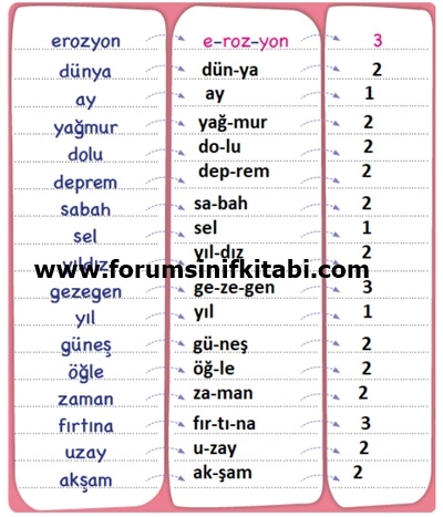 Soru : Kelimeleri hecelerine ayırıp hece sayısını yazınız.