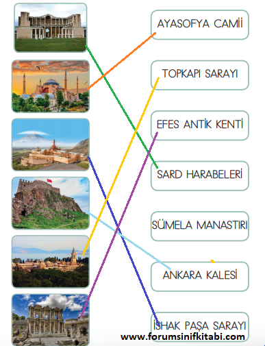 Soru: Tarihî eserlerin görsellerini adlarıyla eşleştiriniz