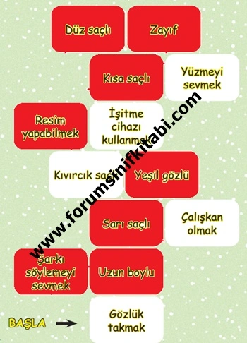 Soru : Fiziksel özellik bildiren ifadelerin yazılı olduğu alanları kırmızı ile boyayınız. Boyadıktan sonra ortaya çıkan şeklin hangi oyuna ait olduğunu noktalı yere yazınız.