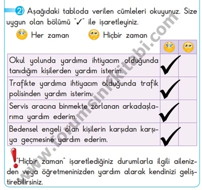 2. Sınıf Hayat Bilgisi Kitabı Yardım Edelim Metni Etkinlik Cevapları