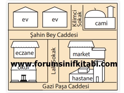 6. Yandaki resme göre okulun yakın çevresinde bulunanlar hangisinde doğru verilmiştir?