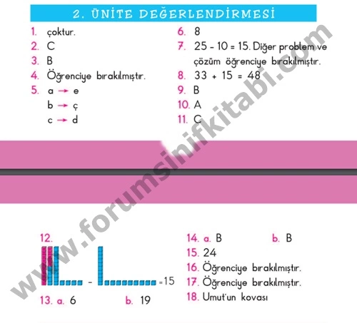 2. Sınıf Matematik Kitabı 2. Ünite Değerlendirmesi Metni Cevapları