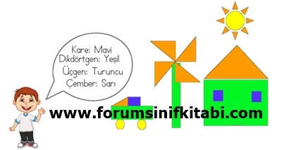 4) Aşağıdaki görselde kullanılan geometrik şekilleri istenen renklerde boyayınız.