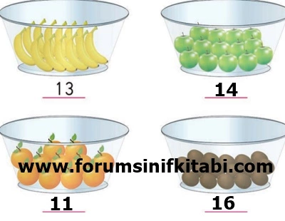 Soru : Kaplardaki meyveleri sayalım. Her kapta kaç 1 tane meyve olduğunu örnekteki gibi yazalım.