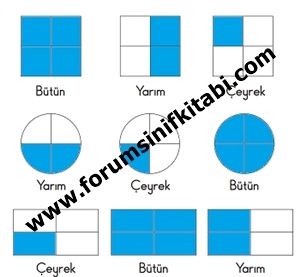 2. Sınıf Matematik Kitabı Bütün, Yarım ve Çeyrek Metni Cevapları
