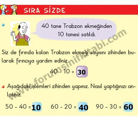 1. Otobüsteki 40 yolcunun 20 tanesi durakta iniyor. Otobüste kalan yolcu sayısını zihinden bulunuz.