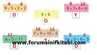Soru : AÅŸağıda bazı iÅŸlem kartları karışık olarak verilmiÅŸtir. İşlemlerden doÄŸru olanların altlarındaki kutucuÄŸa “D”, yanlış olanlarınkine ise “Y” yazalım.