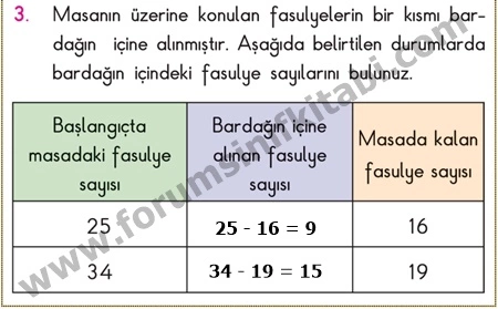 3. Masanın üzerine konulan fasulyelerin bir kısmı bardağın içine alınmıştır. Aşağıda belirtilen durumlarda bardağın içindeki fasulye sayılarını bulunuz.