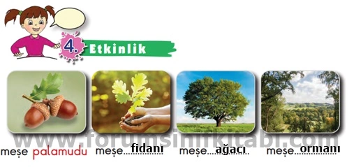 Soru : Görsellerin isimlerini örnekteki gibi yazalım. Daha sonra bir ormanın nasıl oluştuğunu öğrendiğimiz şarkıdan hareketle arkadaşlarımıza anlatalım.