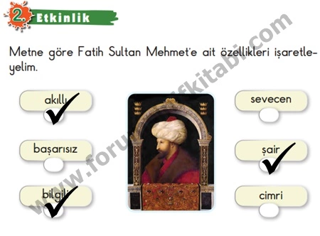 2. Sınıf Türkçe Kitabı Fatih Sultan Mehmet Dinleme Metni Etkinlik Cevapları