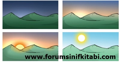 Görselde birinci resimde Güneş henüz doğmamıştır. Hava karanlıktır.