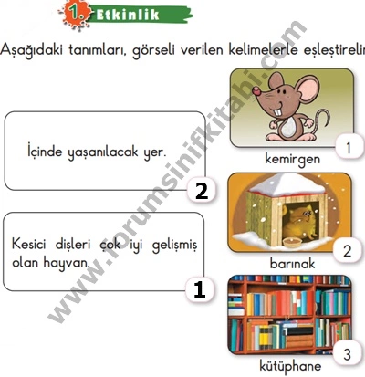 Soru : Aşağıdaki tanımları, görseli verilen kelimelerle eşleştirelim.