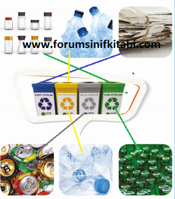 Soru: Aşağıda verilen maddeleri uygun olan geri dönüşüm kutusu ile eşleştiriniz.