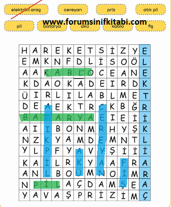 Soru: Aşağıda verilen kavramları, bulup örnekteki gibi boyayınız.
