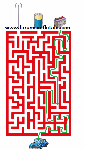 Soru: Resimdeki otomobil kullandığı elektrik enerjisi kaynağına gitmek istiyor. Ona yolu gösterir misiniz?