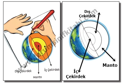 Soru : AyÅŸe defterine Dünya’nın katmanlarını çizmiÅŸtir. Sizce bu çizimin neresinde hata yapmıştır? DoÄŸrusunu yandaki model üzerinde gösteriniz.