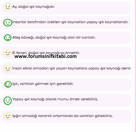 Soru: Aşağıdaki cümleleri okuyunuz. Doğru olan cümlelerin başındaki görseli boyayınız.