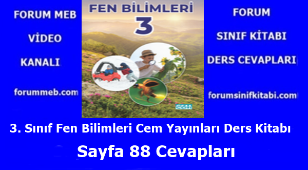 “3. Sınıf Fen Bilimleri Cem Yayınları Kitabı Sayfa 88 Cevapları”