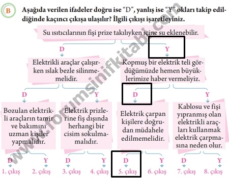 B. Aşağıda verilen ifadeler doğru ise “D”, yanlış ise “Y” okları takip edildiğinde kaçıncı çıkışa ulaşılır? İlgili çıkışı işaretleyiniz.
