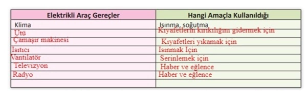 3. Sınıf Fen Bilimleri Ders Kitabı Elektrikli Araç-Gereçler Metni Cevapları