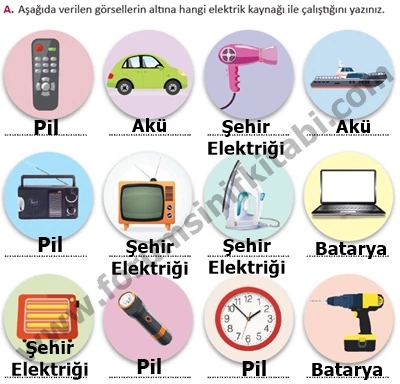 A. Aşağıda verilen görsellerin altına hangi elektrik kaynağı ile çalıştığını yazınız.