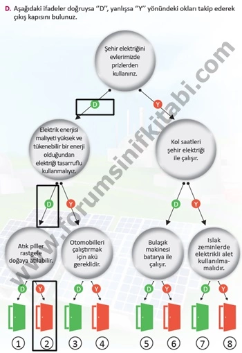 D. Aşağıdaki ifadeler doğruysa ‘’D’’, yanlışsa ‘’Y’’ yönündeki okları takip ederek çıkış kapısını bulunuz.