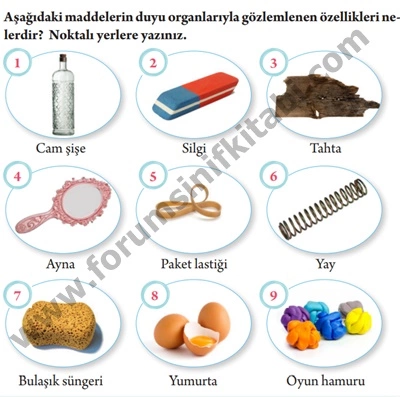 A. Aşağıdaki maddelerin duyu organlarıyla gözlemlenen özellikleri nelerdir? Noktalı yerlere yazınız.