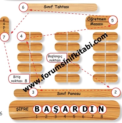 4. Sınıf krokisini çizdi. Şifrenin harflerini sakladığı yerleri, kroki üzerinde sayılarla gösterdi.
