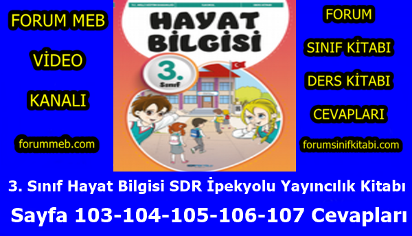 3. Sınıf Hayat Bilgisi Kitabı 103-104-105-106-107. Sayfa Cevapları SDR İpekyolu Yayıncılık