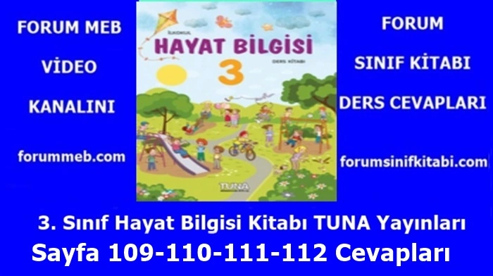 3. Sınıf Hayat Bilgisi Kitabı Sayfa 109-110-111-112 TUNA Yayınları